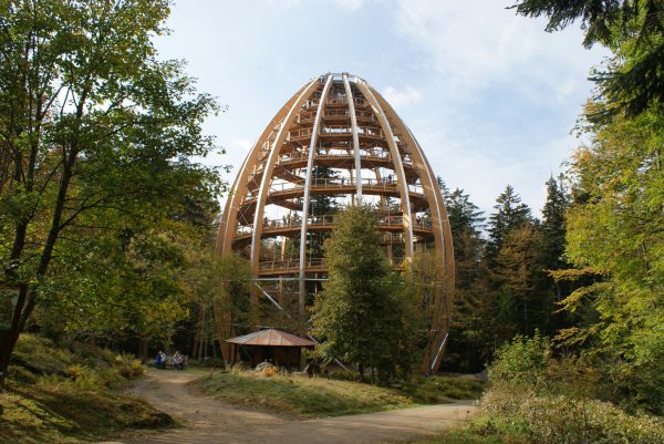 Titelbild: Baumwipfelpfad mit dem 44 Meter hohen "Baumei". Bildnachweis: BAYERN TOURISMUS Marketing GmbH