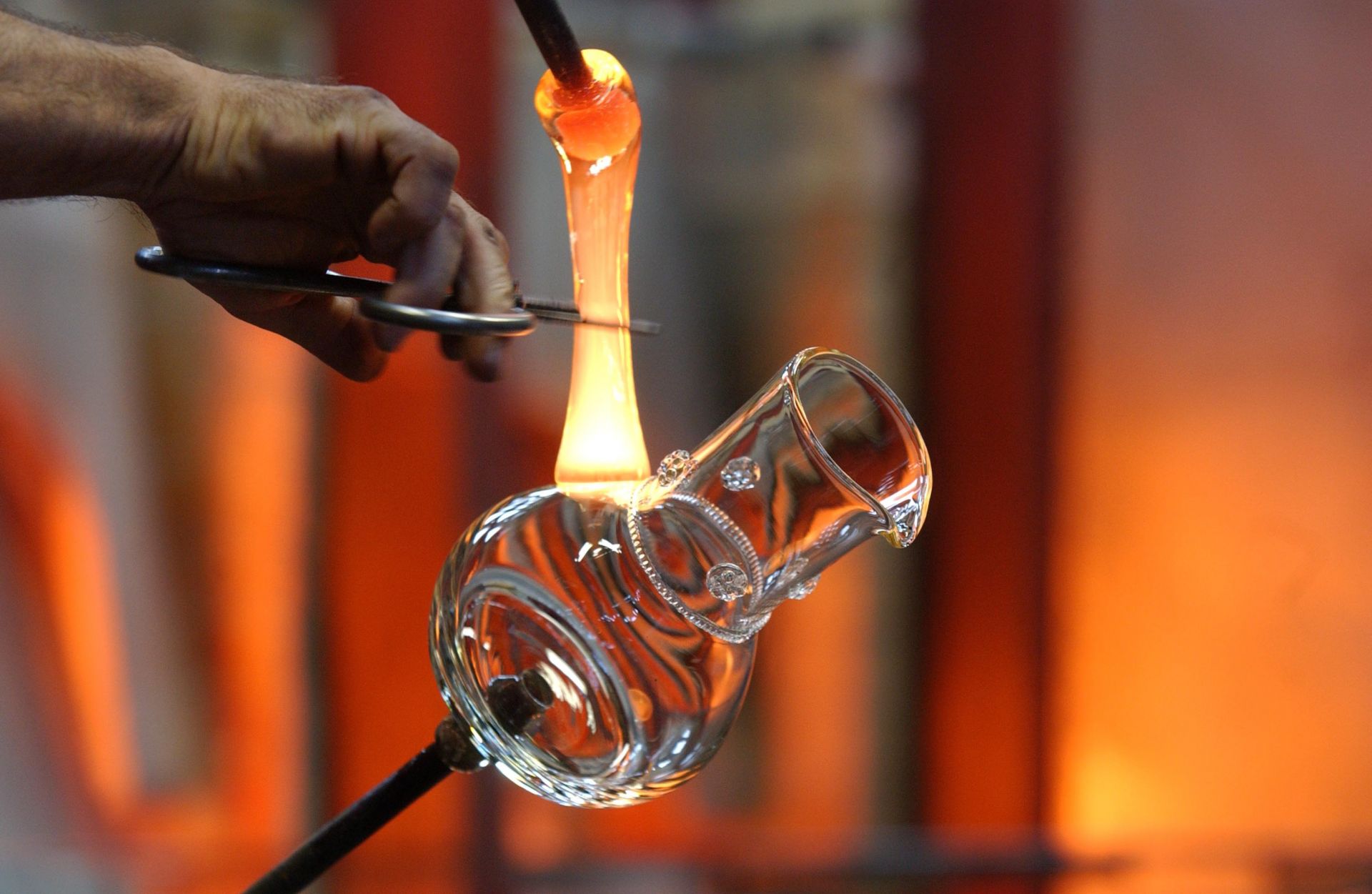Titelbild: Anbringen des Henkels bei der Glasfertigung. © Glashütte Theresienthal/Zwiesel