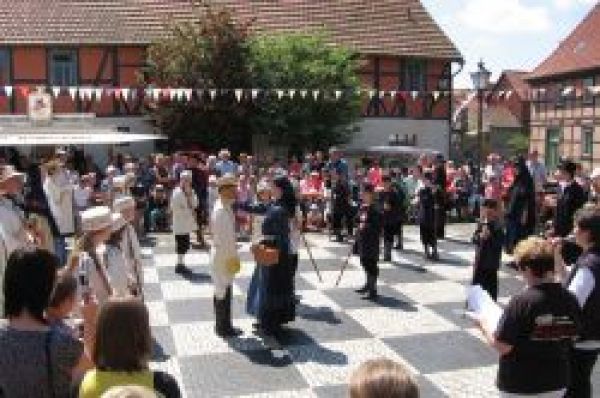 Titelbild: Beim jährlichen großen Fest verwandeln sich die Bewohner Ströbecks in lebende Schachfiguren. Foto: djd/Halberstadt